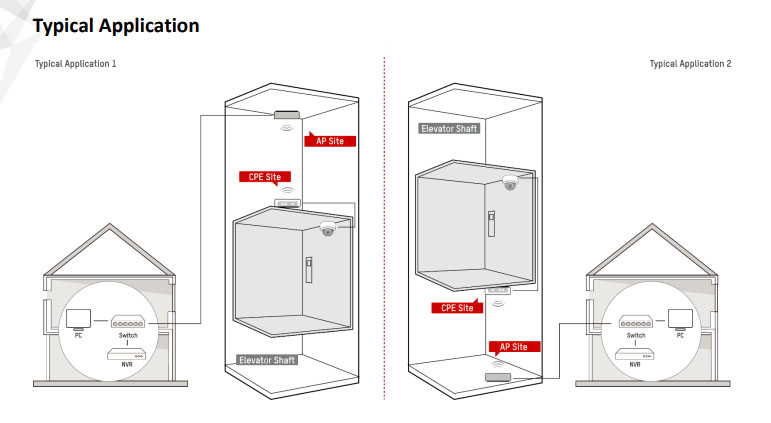 - Diseño especialmente pensado para entornos de elevadores, simplificando la conectividad de sistemas de vigilancia CCTV sin cables.