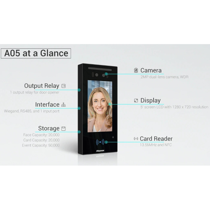 Akuvox A05C – Control de acceso facial, detección de máscara y temperatura, 20.000 caras
