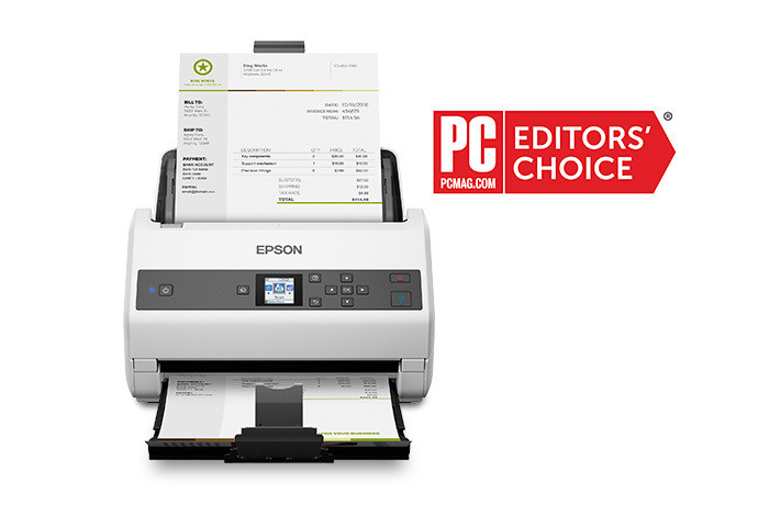 Escáner WorkForce DS-870 con velocidad de hasta 65 ppm y alimentador de 100 páginas para manejar grandes volúmenes sin interrupciones.