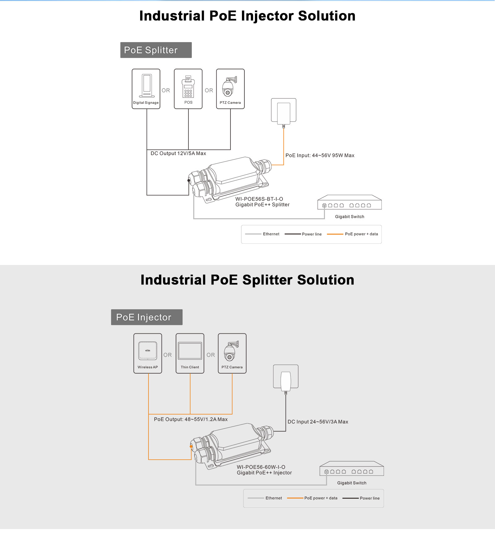 wi-poe56-60w-i-o poe injector outdoor industrial 60w ieee 802.3bt compatible para redes outdoor y industrial