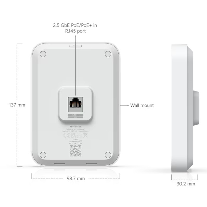 Ubiquiti U7 In-Wall – punto de acceso WiFi 7 dual radio 2.4/5 GHz – cobertura 1,250 ft², 200+ usuarios - U7-IW – Beneficios clave