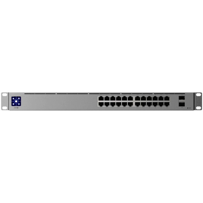 Switch gestionado Ubiquiti USW-24 con 24 puertos Gigabit y 2 SFP, capacidad de 26 Gbps y diseño sin ventilador que permite instalación en cualquier espacio. Ideal para redes SMB que requieren alto rendimiento y bajo ruido. Su pantalla táctil facilita el diagnóstico rápido.