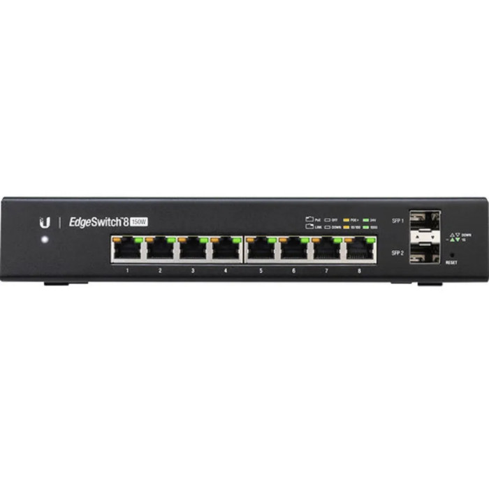 EdgeSwitch ES-8-150W ofrece potencia PoE+ de 150W en 8 puertos Gigabit para una gestión eficiente y conectividad sólida. Ideal para redes empresariales y dispositivos PoE, con interfaz avanzada y capacidad de switching de alta velocidad. Descubre su rendimiento confiable.